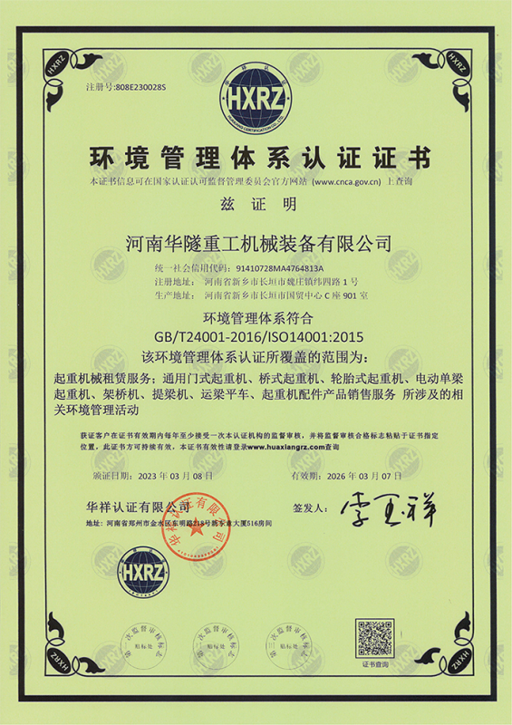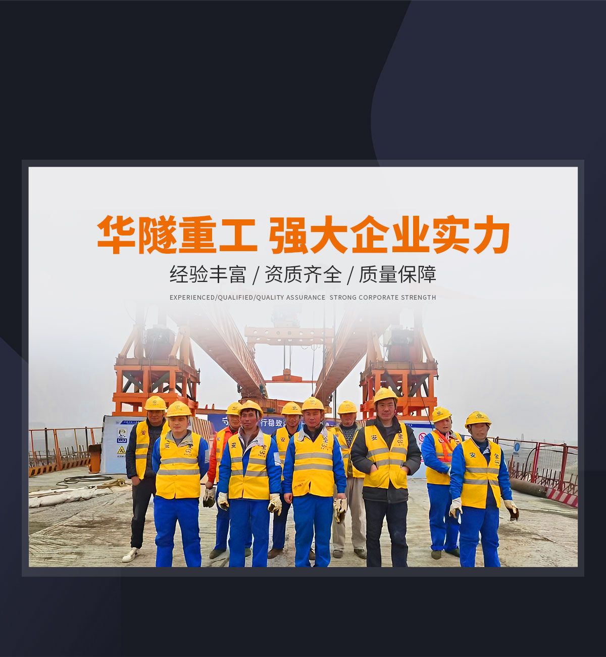 河南華隧重工機(jī)械裝備有限公司主要從事通用門式起重機(jī)、橋式起重機(jī)、電動(dòng)單梁起重機(jī),輪胎式起重機(jī)、架橋機(jī)、提梁機(jī)、遠(yuǎn)梁平車、鋼絲繩電動(dòng)萌蘆、卷?yè)P(yáng)機(jī)、起重配件制造、銷售:起重機(jī)械租賃、安裝和維修,起重設(shè)備園收,機(jī)械設(shè)備維修,鋼結(jié)構(gòu)工程承包,橋梁工程及技術(shù)咨淘服務(wù),銷售五金制品、機(jī)電設(shè)備:建設(shè)工程監(jiān)理,建設(shè)工程設(shè)計(jì),各類工程建設(shè)活動(dòng),建筑勞務(wù)分包,建筑物折除作業(yè),施工作業(yè),工程管理服務(wù),土石方工程施工,裝如發(fā)運(yùn)。  公司已通過(guò)IS0國(guó)際質(zhì)量、環(huán)境、健康與安全三合一標(biāo)準(zhǔn)認(rèn)證,特種設(shè)備制造許可證和特種設(shè)備安裝改造維修許可證。擁有完熟的質(zhì)量管理體系。嚴(yán)格的管理制度,強(qiáng)大的生產(chǎn)能力和先進(jìn)的檢測(cè)手段,在保證產(chǎn)品質(zhì)量的同時(shí),也具備了極強(qiáng)的市場(chǎng)競(jìng)爭(zhēng)力。  公司堅(jiān)持科技創(chuàng)新為理念,產(chǎn)品質(zhì)量為核心,注重信譽(yù),建立了減信可靠、快捷、思速。便利周到的售后服務(wù)網(wǎng)絡(luò)。  我們擁有的技術(shù)專家和技術(shù)服務(wù)隊(duì)伍為客戶提供充善的售前技術(shù)支持和全天候的售后服務(wù)體系,讓您無(wú)后顧之憂,享受一站式的超值服務(wù)。  “華隧重工,伴您成功“是華隧重工永遠(yuǎn)的宗指,真被的希望與各界朋友攜手并進(jìn)。共創(chuàng)輝準(zhǔn)!